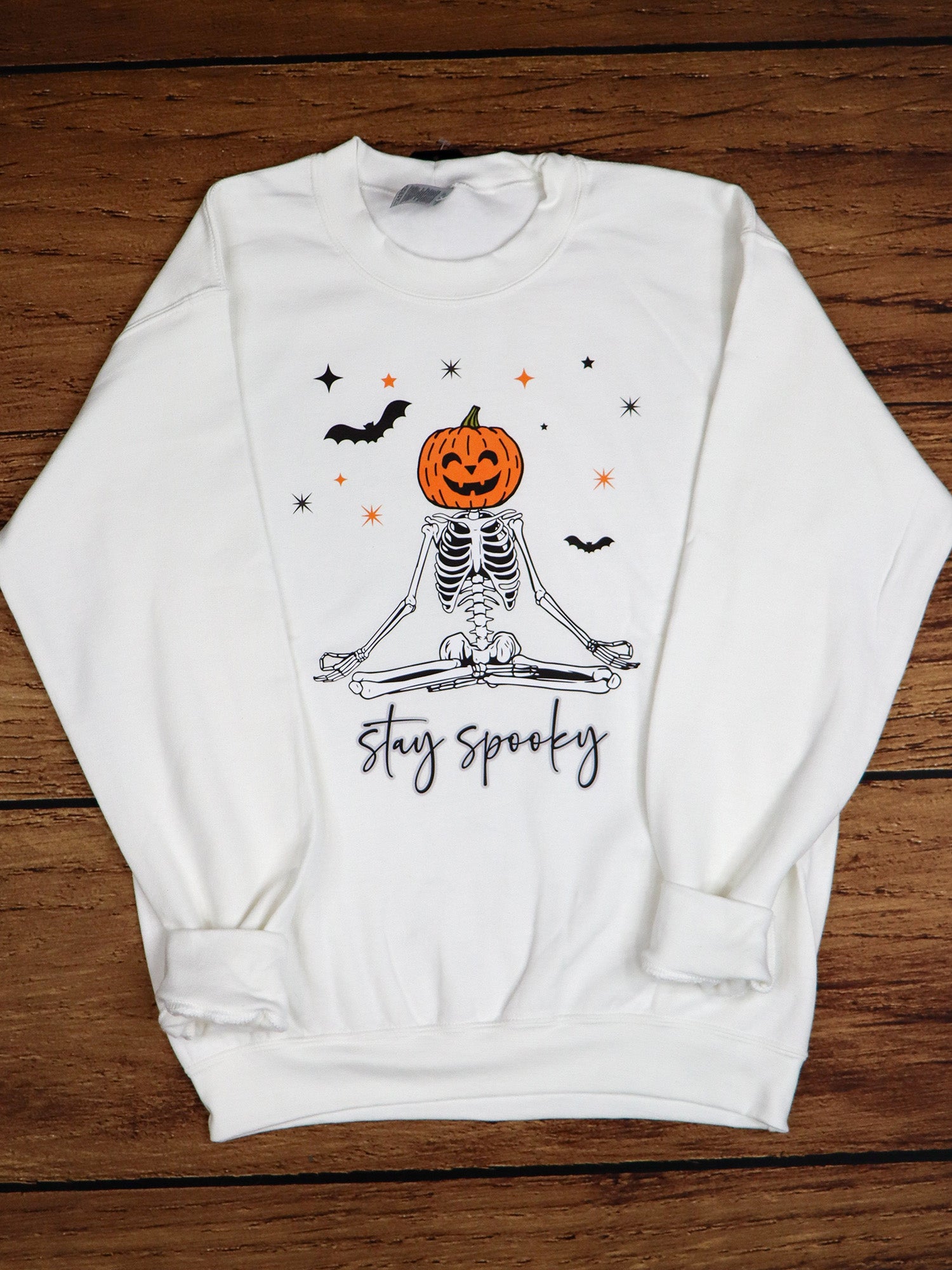 Stay Spooky Meditation Skeleton CREWNECK- White